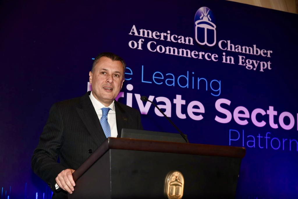 وقد استهل، السيد الوزير، حديثه بالترحيب بالحضور، معرباً عن سعادته لتواجده اليوم، ومقدماً الشكر لغرفة التجارة الأمريكية في مصر على هذه الدعوة الكريمة للمشاركة في اللقاء اليوم.